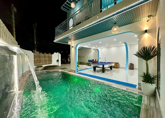 Located only 8 minutes' walk from the Vung Tau Back Beach, the 6-bedroom Santorini 17A - Gan Bien Bai Sau Di Bo Ra Bien Villa Vung Tau includes a terrace with views of the sea. Offering Wi-Fi, this beachfront villa is located 2.6 km from Christ the King Statue.